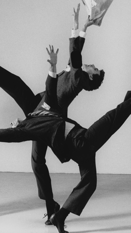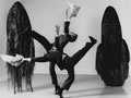 ...Chartier's work was filled with symbolism, yet the images were strictly controlled, as was her strong central focus. She brillantly has the piece, for five male dancers, move backwards from the cold and indifferent businessmen to the natives who could drum and dance their feelings without the barriers of polite society.